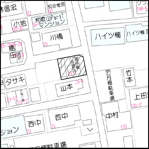 | 特色 | 建築条件なし、上物有り/更地渡し、北東角地、公営水道(引込管PP20㎜)、LPG/浄化槽(エリア)、セットバック有り(一部)、和歌山市道(敷地東側道路)、駅近物件 | ||